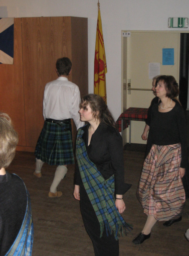 Everyone singing and playing "Comin' thro the Rye"