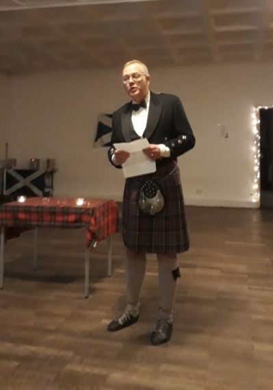 Alan and Silke presenting the “Toast to the Lassies” and the “Lassie's Reply”.